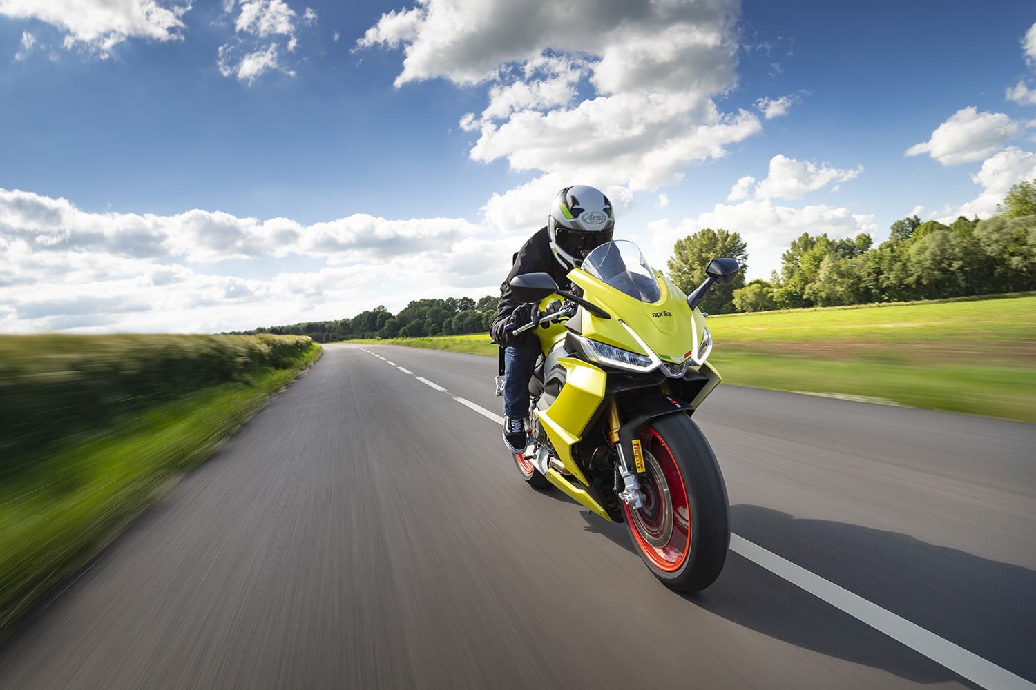Thierry a pris la mesure du Diablo Rosso IV sur les routes sinueuses du Vexin au guidon d’une Aprilia RS660 – une petite « sportive de route » particulièrement pétillante –, toutes assistances au pilotage désactivées… et sous un soleil de plomb.
