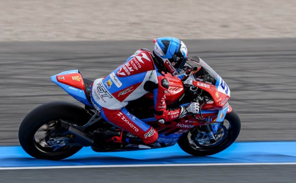 Lui a faillit réaliser une deuxième pôle consécutive après celle de Portimao. Lui c’est bien sur Valentin Debise. Au guidon de sa ZX Moto, il a confirmé sa forme du moment et la montée en puissance de la moto chinoise. On rappellera qu’il s’agit là de la première implication du constructeur chinois en championnat du monde Supersport. De fait cette deuxième place sur la grille pour 76 millièmes de seconde peut être à juste titre considéré comme une sacrée performance. Voilà qui devrait nous permettre d’assister demain à un beau duel tricolore qui on l’espère permettra à nos deux représentants de finir sur le podium.